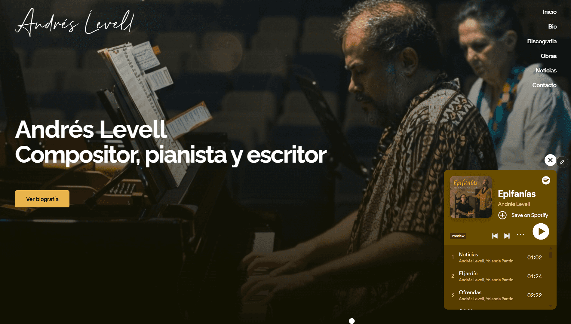 De la partitura al píxel. Co-creamos el ecosistema digital del maestro Andrés Levell, fusionando su vasto archivo sonoro con una interfaz minimalista de alto rendimiento. Un activo digital desarrollado íntegramente en Framer, donde la fluidez del movimiento imita la cadencia de su música.